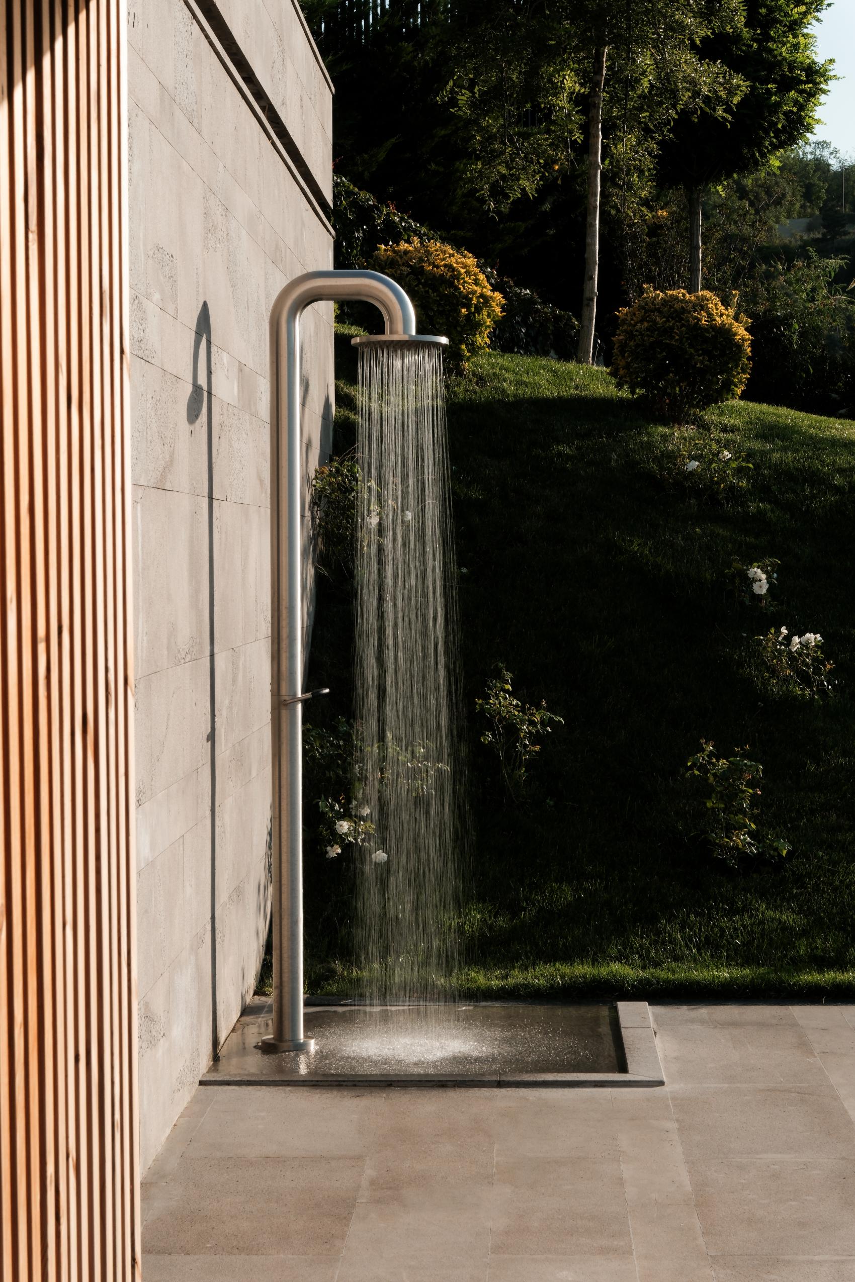 This sensitivity to site extends to the exterior. The outdoor dining area features a stone mural, carved with fluid lines that echo the chaos of the human mind seeking meaning. Stainless steel dining tables and Snoc furniture complete the space, blurring boundaries between architecture, landscape, and art.