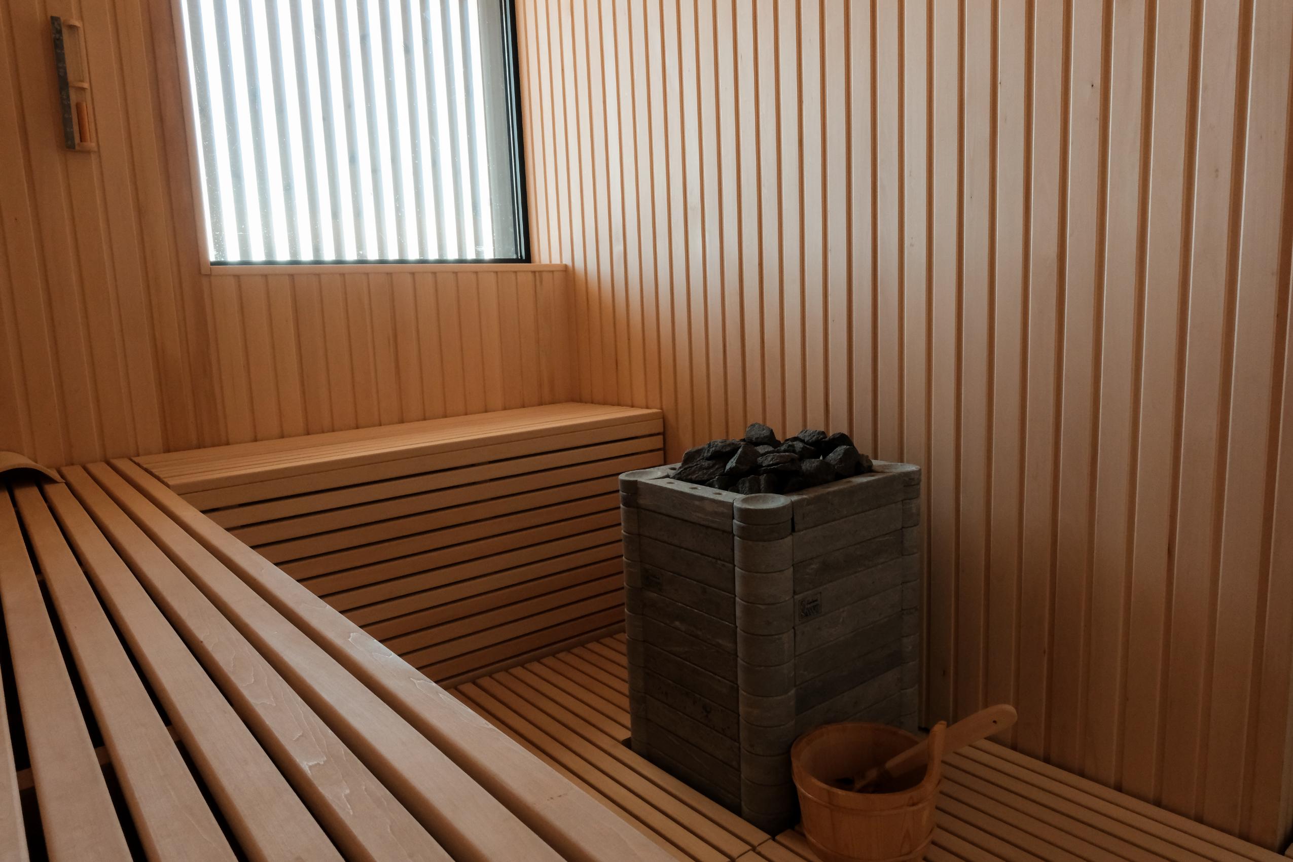 The wine cellar integrates natural rock formations discovered during excavation, preserved in situ to create a raw, grounding element within the space. A minimalist grid of steel wine racks contrasts with the organic texture of the stone, enhancing the cellar’s sculptural atmosphere.
